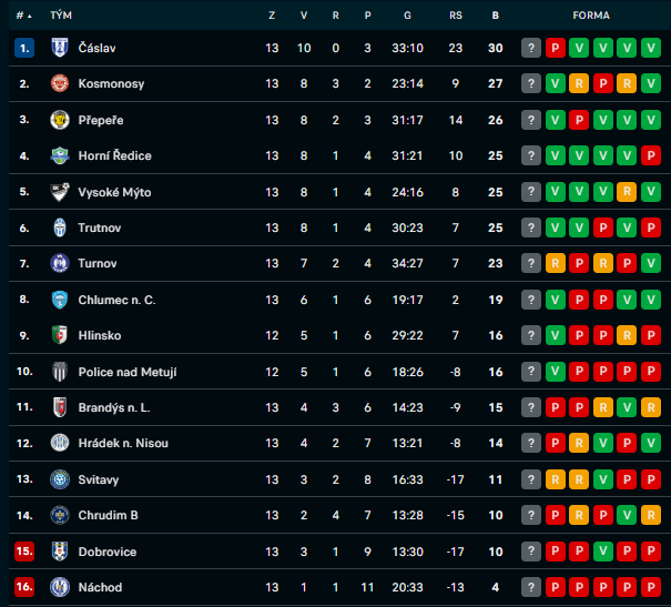 13. kolo 4. ČFL FK Turnov 3:3 TJ Svitavy