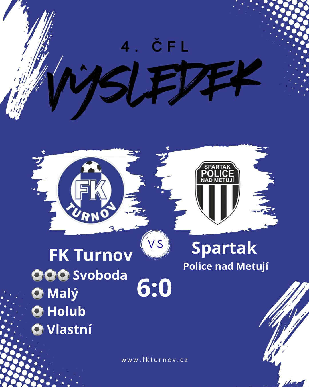 FK Turnov předvedl v domácím prostředí jednoznačnou podívanou. V domácím utkání si bez větších potíží poradil se Spartakem Policí nad Metují, kterému nasázel půltucet branek a zvítězil jasně 6:0.